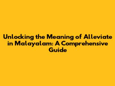 Unlocking The Meaning Of 'Alleviate' In Malayalam: A Comprehensive Guide