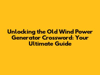 Unlocking The Old Wind Power Generator Crossword: Your Ultimate Guide
