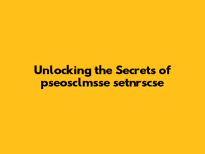 Unlocking The Secrets Of Pseosclmsse Setnrscse