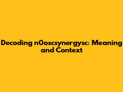 Unraveling N0oscsynergysc: Meaning And Usage