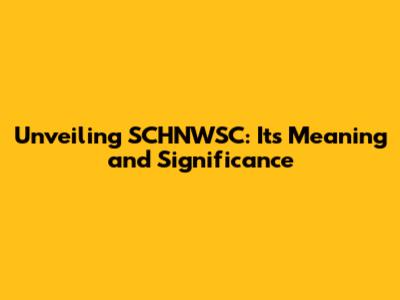Unveiling SCHNWSC: Its Meaning And Significance