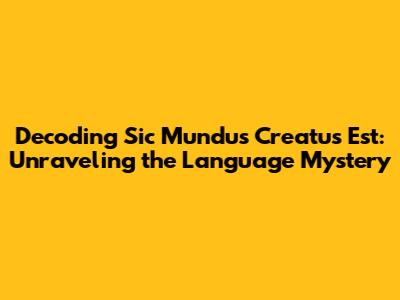 Unveiling 'Sic Mundus Creatus Est': The Language Behind The Phrase