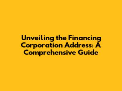 Unveiling The Financing Corporation Address: A Comprehensive Guide