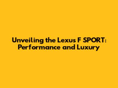 Unveiling The Lexus F SPORT: Performance And Luxury