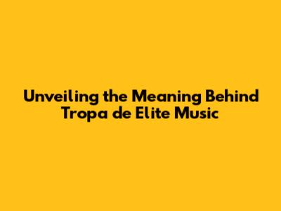 Unveiling The Meaning Behind 'Tropa De Elite' Music