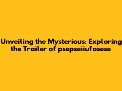 Unveiling The Mysterious: Exploring The Trailer Of Psepseiiufosese