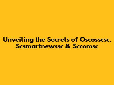 Unveiling The Secrets Of Oscosscsc, Scsmartnewssc & Sccomsc