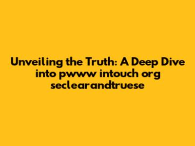 Unveiling The Truth: A Deep Dive Into Pwww Intouch Org Seclearandtruese