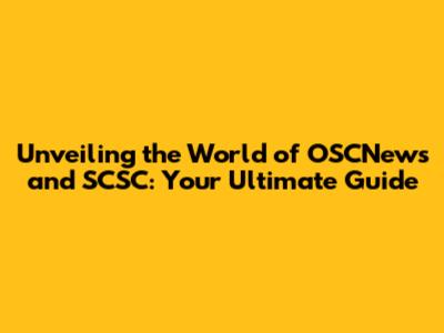 Unveiling The World Of OSCNews And SCSC: Your Ultimate Guide