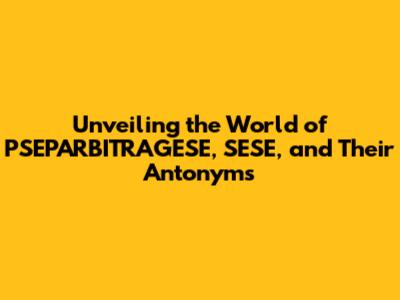 Unveiling The World Of PSEPARBITRAGESE, SESE, And Their Antonyms