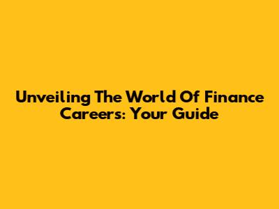 Unveiling The World Of Finance Careers: Your Guide