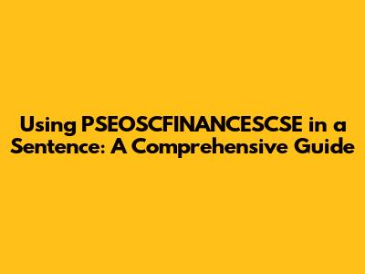 Using PSEOSCFINANCESCSE In A Sentence: A Comprehensive Guide