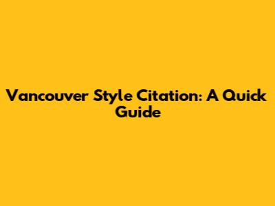 Vancouver Style Citation: A Quick Guide