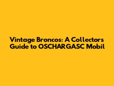 Hey guys, buckle up! We're diving deep into the world of vintage Broncos, specifically focusing on those awesome OSCHARGASC Mobil editions. If you're a collector, a Bronco enthusiast, or just someone who appreciates classic automotive history, you're in the right place. Let's explore what makes these Broncos so special and why they're highly sought after.