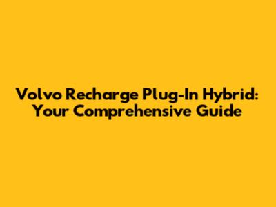Volvo Recharge Plug-In Hybrid: Your Comprehensive Guide