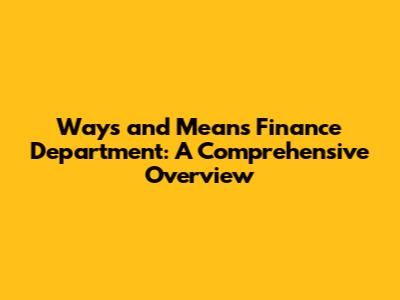 Ways And Means Finance Department: A Comprehensive Overview