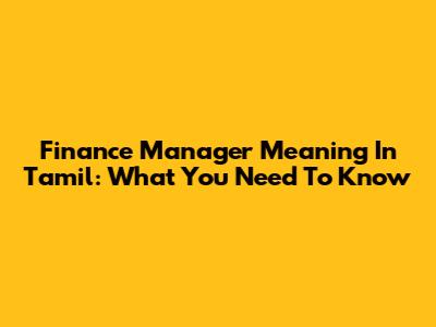 Finance Manager Meaning In Tamil: What You Need To Know